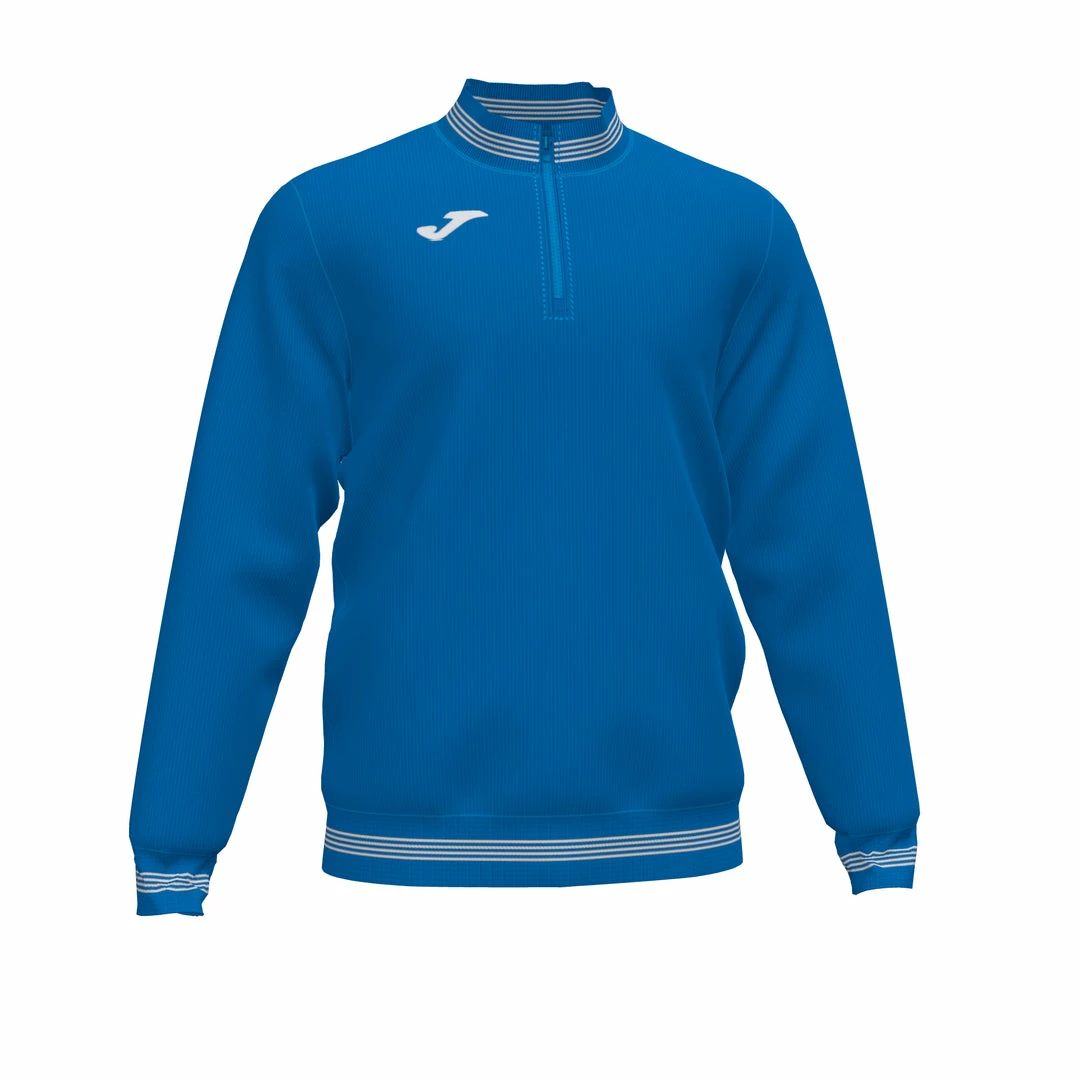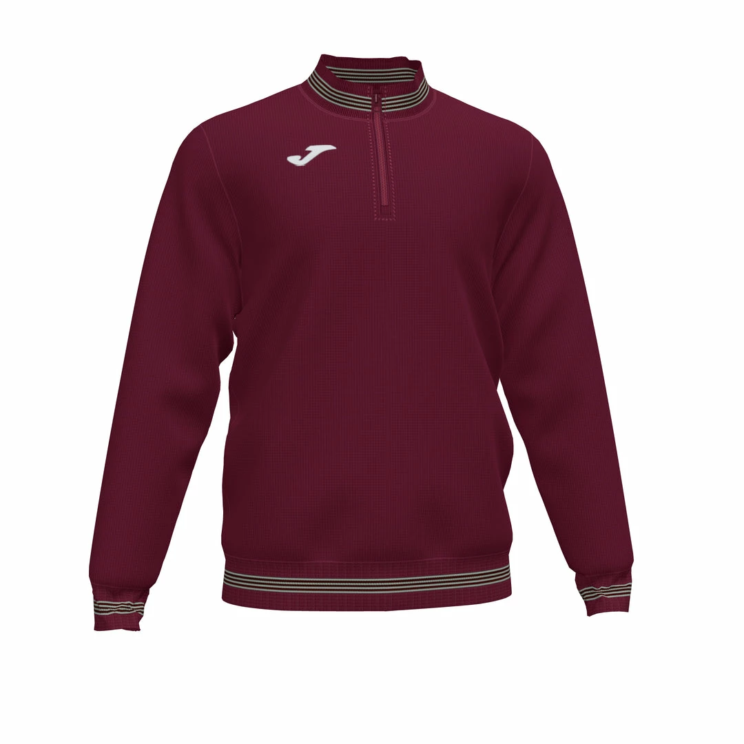 Sweatshirt with half zip. Striped, ribbed collar, cuffs and hem. ย