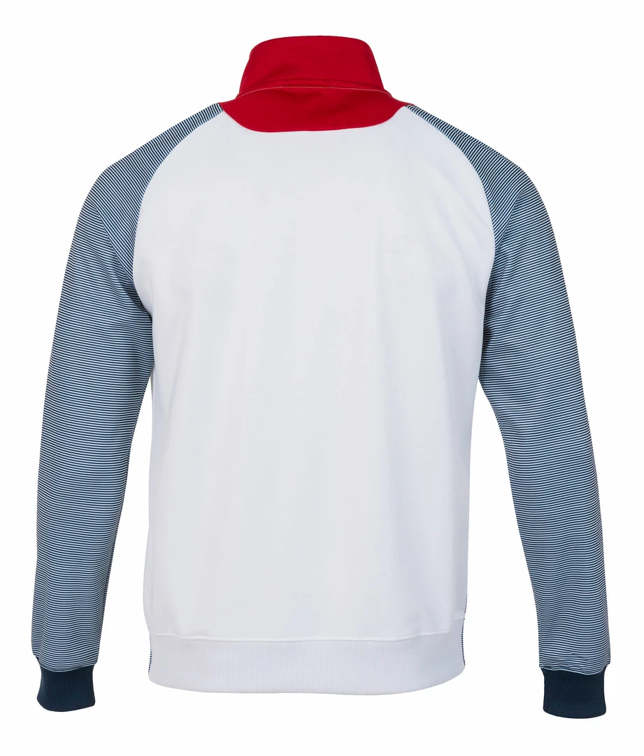 Full zip, ribbed cuffs and waistband for comfort and fit. Sublimation pin stripes on the sleeves and body.
